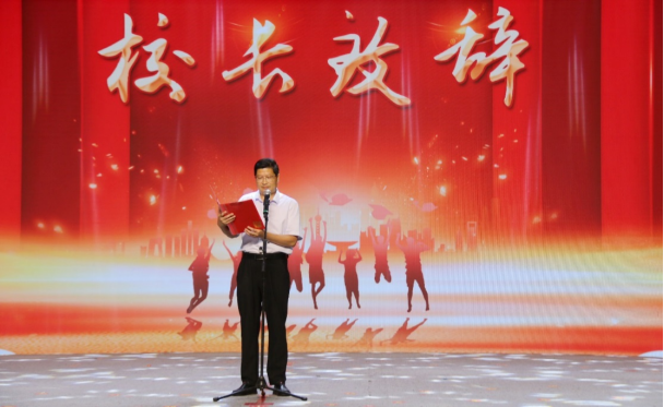 上午9:00,毕业典礼在庄严的国歌声中拉开帷幕。全体师生和家长庄严肃立,齐唱国歌。方斌斌代表学校致辞,向圆满完成初中学业的全体同学表示热烈的祝贺,向辛勤培育同学们健康成长的老师们致以崇高的敬意,向关心和支持学校发展的全体家长表示衷心的感谢。方斌斌强调,全体毕业生用自己的一言一行,调和着校园最丰富的色彩,描绘着生命最绚丽的青春,是校园里最靓丽的风景。在未来的征途中,既要仰望星空,更需脚踏实地,让感恩成为一种责任,让坚持成为一种习惯,让担当成为一种品格,让奋斗成为一种力量,健康成长,做最好的自己。