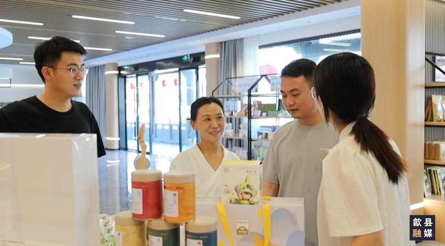 线上人气旺,线下也精彩。馆内设置了“歙采缤纷”绿色农产品区域公用品牌展示区,目前已与12家农业企业、2个强村公司开展合作,整合农产品和文创产品200多个品类,通过发展沉浸式体验型文旅消费,引导和培育体验消费、智能消费等新热点新模式,发挥联农带农助农作用,促进优质农产品销售。市民江浩告诉记者,“看到这么多乡村振兴的农产品以及文化类的产品,很吸引我。产品有文化底蕴,我准备带点回去分享给朋友。”